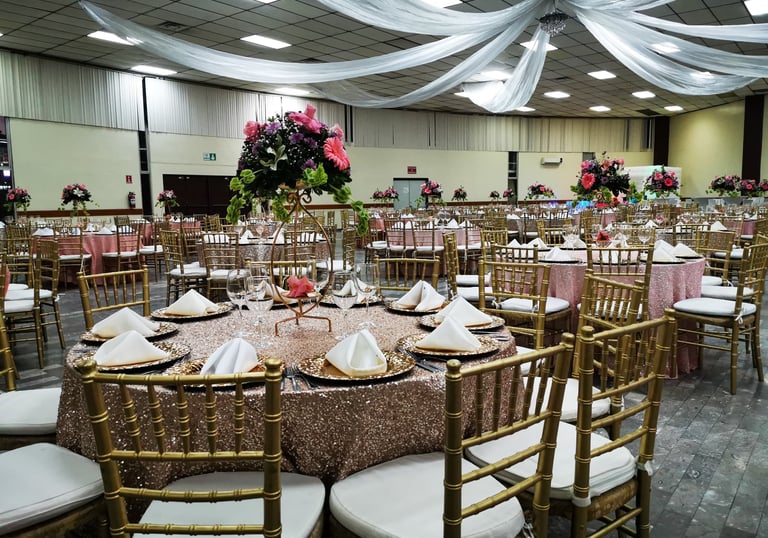 Bodas, XV Años, Bautizos, Aniversarios, etc. Diseñamos banquetes elegantes que reflejan la esencia de tu amor.